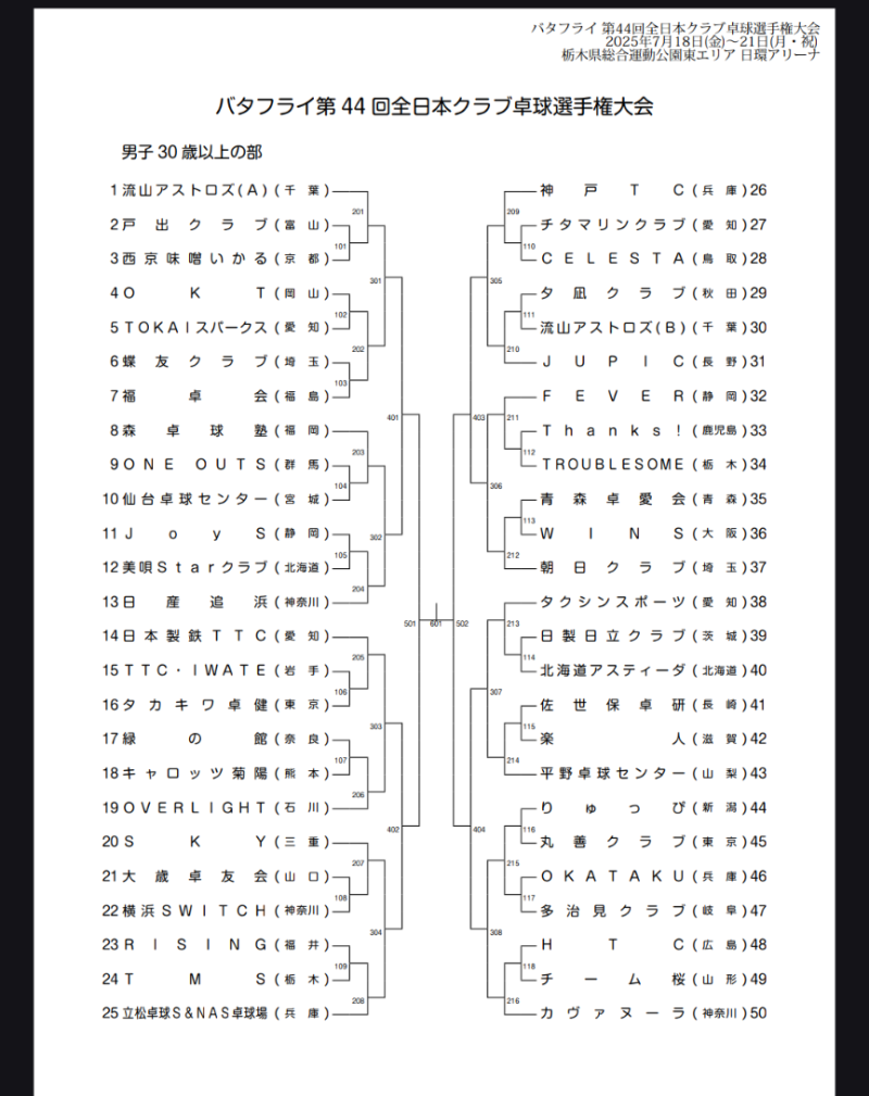 前回の30代の部。クラブ選手権の記事はコチラ↓