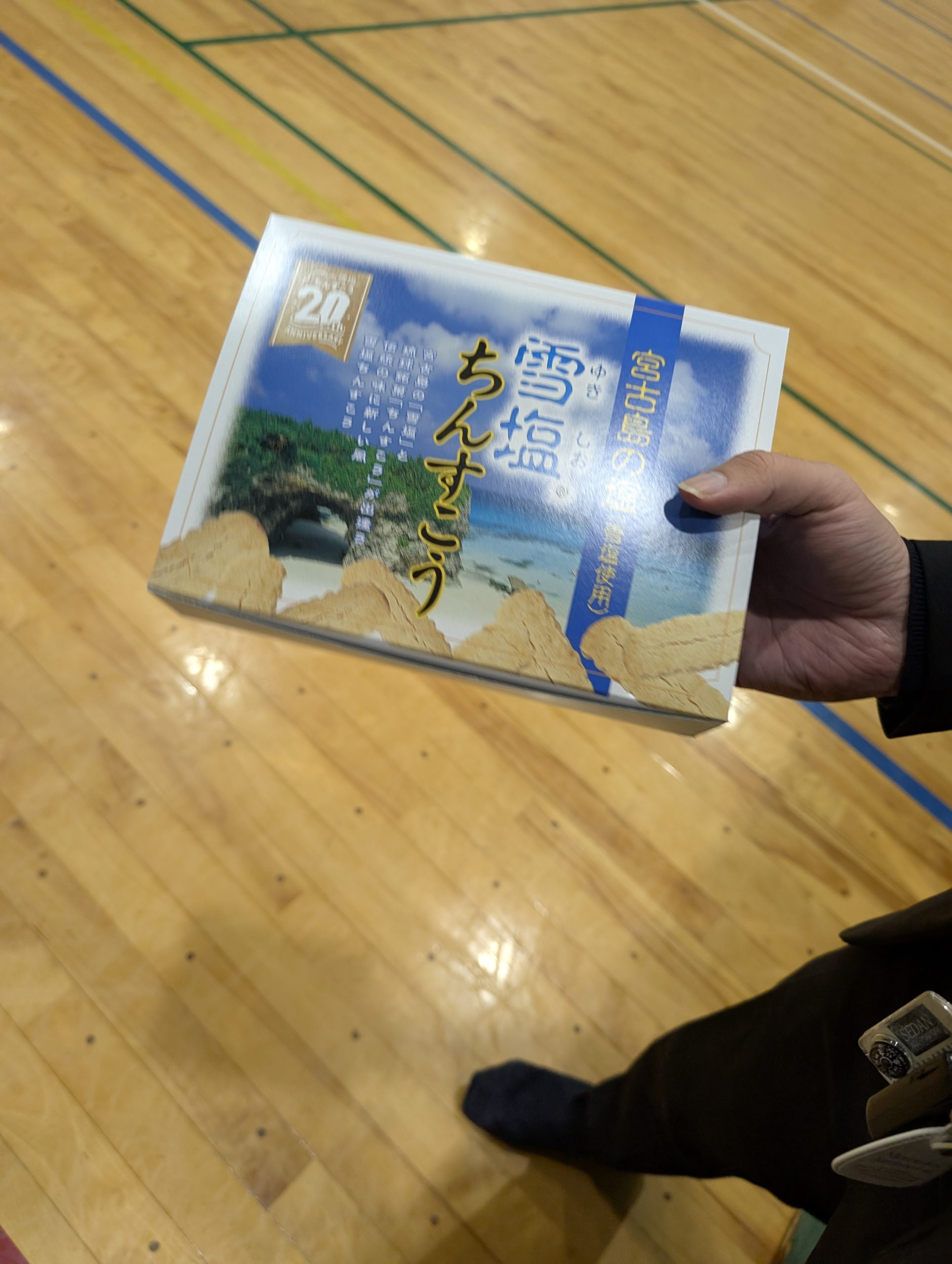 そんなこんなで練習も終盤に差し掛かったところで沖縄からお土産を持って帰ってきた秋山選手が来訪。