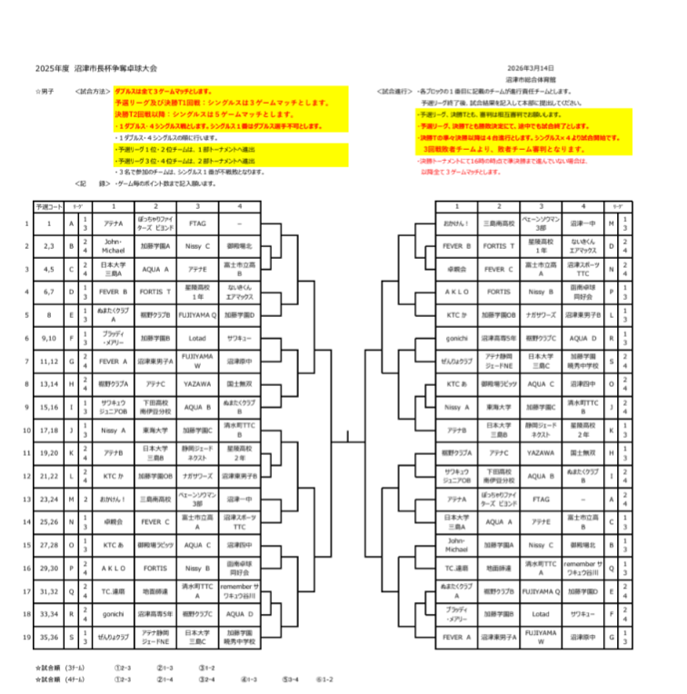 沼津市長杯争奪卓球大会(R8.3.14)